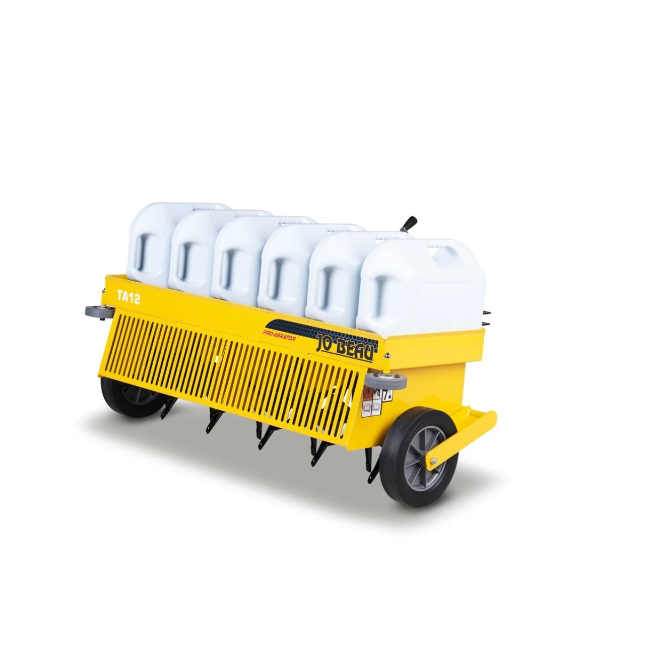 Der Jo Beau® TA10 (914 mm Belüftungsbreite) ist ideal für gewerbliche Räume und große Wohnhäuser, während der TA12 (1219 mm Belüftungsbreite) die Möglichkeit bietet, nahezu jede Situation zu meistern. Der Belüfter gräbt Löcher in den Rasen. Zwei unabhängige Zinkenrotoren mit 32 oder 40 austauschbaren geschlossenen Hohlstiften von 13 mm sorgen für hervorragende Manövrierbarkeit um Ecken und enge Räume.
