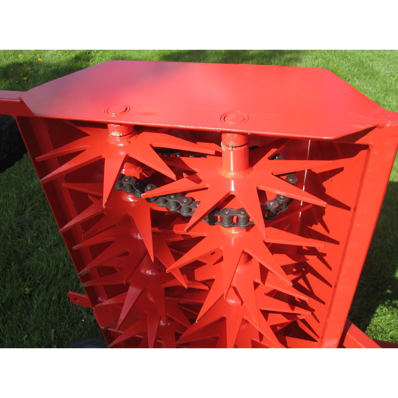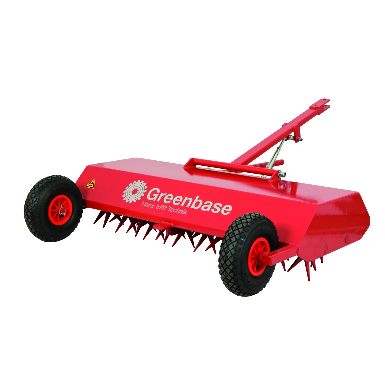 Die vordere Walze belüftet die Rasenfläche, die hintere Walze entfernt mit der dreifachen Umdrehungszahl Mose und Unkraut. Der Greenbase Aero Star eignet sich bestens für große Rasenflächen