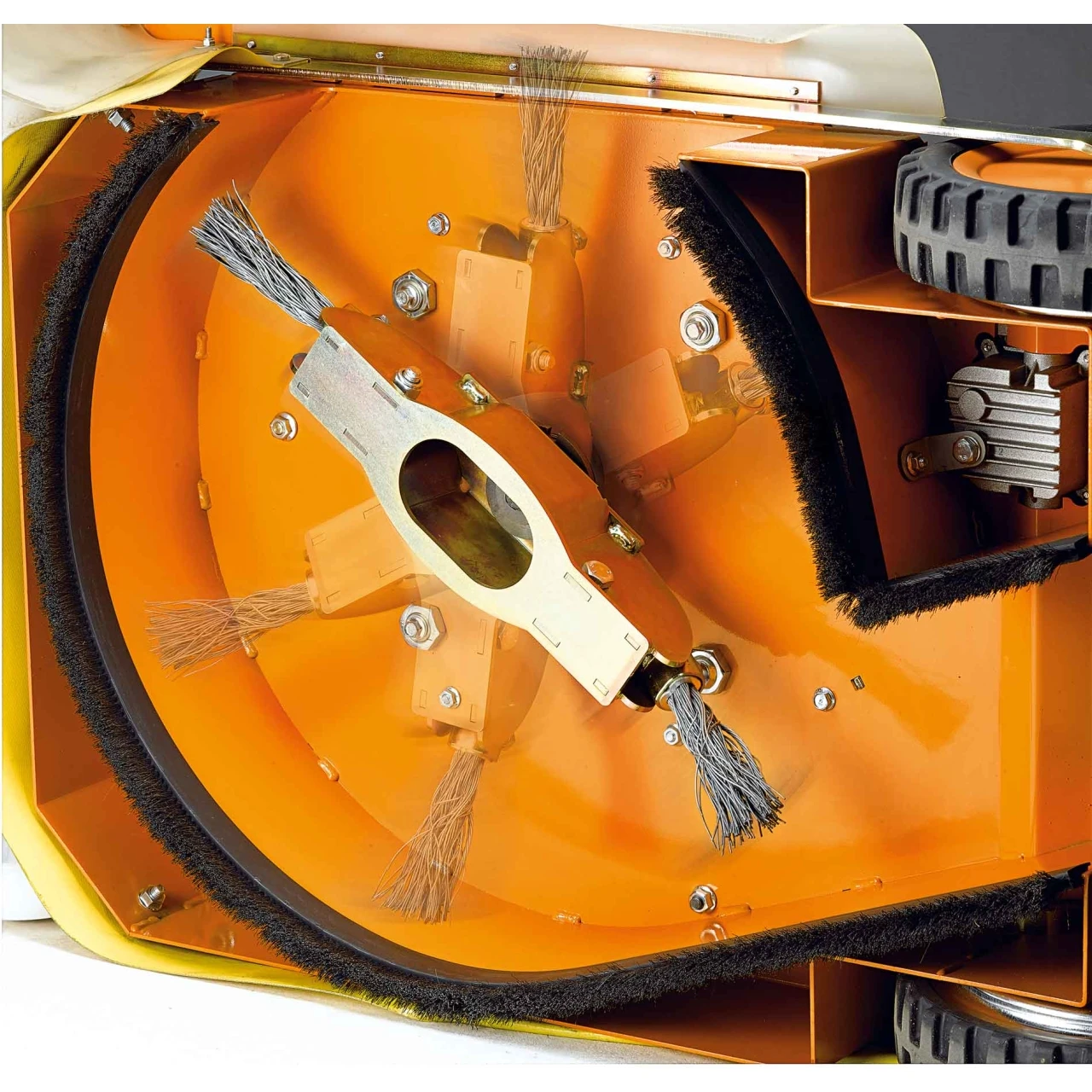 Die Arbeitsweise der AS 50 WeedHex ist durch einen fliehkraftgeregelten Anpressdruck der Bürsten schonend und gleichmäßig. Mit einer Arbeitsbreite von 50 cm liegt ihre maximale Flächenleistung bei rund 1.000 qm pro Stunde. Ihr 25-Liter-Fangsack nimmt entferntes Unkraut sicher aufür Wildkrautentfernung und Sammeln werden somit automatisch in einem Schritt umgesetzt. Beste Ergebnisse erzielt die AS 50 E-WeedHex auf ebenem Pflaster, Rasengittersteinen und entlang von Kanten und Randsteinen. Für die Reinigung von mineralischen Oberflächen und unebenen Pflastern ist sie nicht geeignet. Ihr doppelter Steinschlagschutz (DPLF-Zertifiziert) hält auch bei Rangiermanövern umherfliegende Steinchen oder größere Pflanzenteile sicher im Zaum. Außerdem sorgt er für einen sehr geräuscharmen Betrieb. Durch die kompakten Transportmaße lässt sich die AS 50 E-WeedHex leicht transportieren.