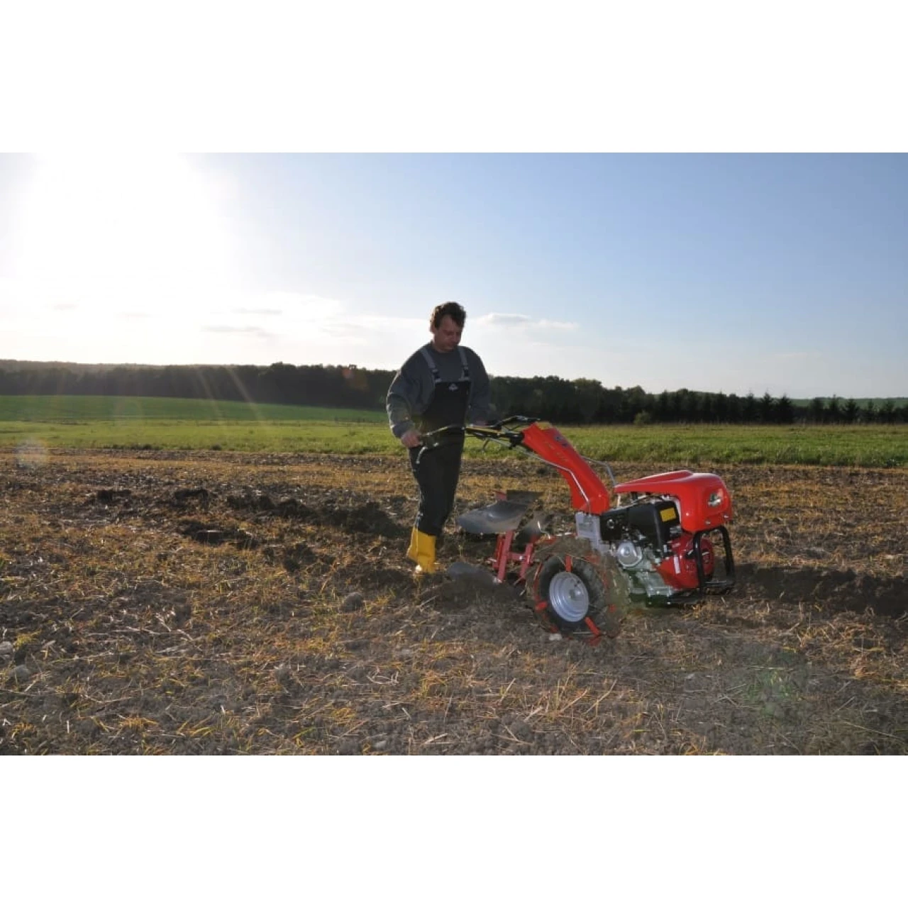 Höchster Bedienkomfort wird erreicht durch laufruhige Motoren, ein modernes Getriebe mit 3 Vorwärts- und 3 Rückwärtsgängen, werkzeuglosen Gerätewechsel sowie einen höhen- und seitenverstellbaren, voll drehbaren, vibrationsgedämpften Führungsholm mit Sicherheitsstopp. Bei Arbeitseinsätzen mit der großen Bereifung und schweren Geräten empfiehlt sich die Grundmaschine mit Differenzialsperre. Bei angebauter Fräseinrichtung kann der Rückwärtsgang aus Sicherheitsgründen nicht geschaltet werden.