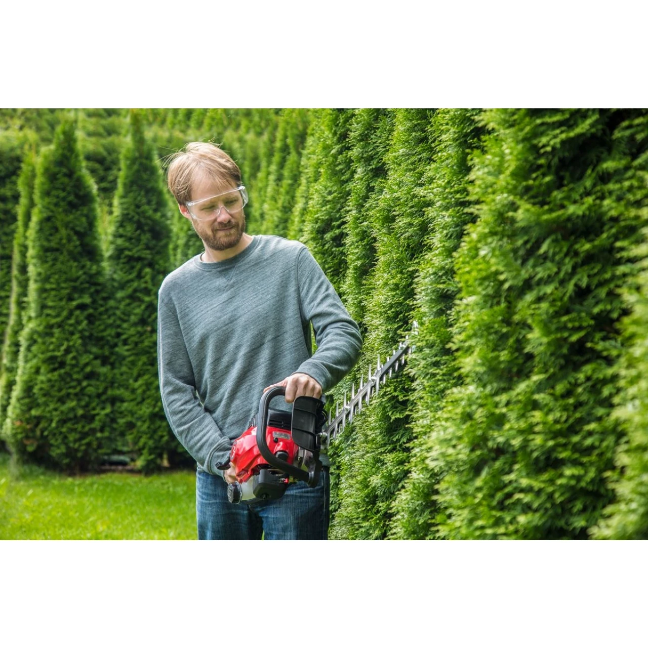 Einzigartiges Leichtstartsystem – Durch eine im Starter verbaute Feder wird fast keine Kraft benötigt, um die Heckenschere zu starten.