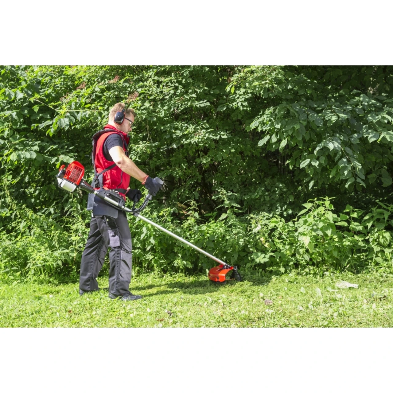 Dank der bequemen und sicheren Geräteführung durch den Bike-Griff sowie der optimalen Gerätebalance mittels Gurteinhängeschiene erledigen Sie auch längere Mäh- und Ausputzarbeiten auf Rasenflächen, im hohen Gras oder leichten Gestrüpp mühelos in schonender Körperhaltung.