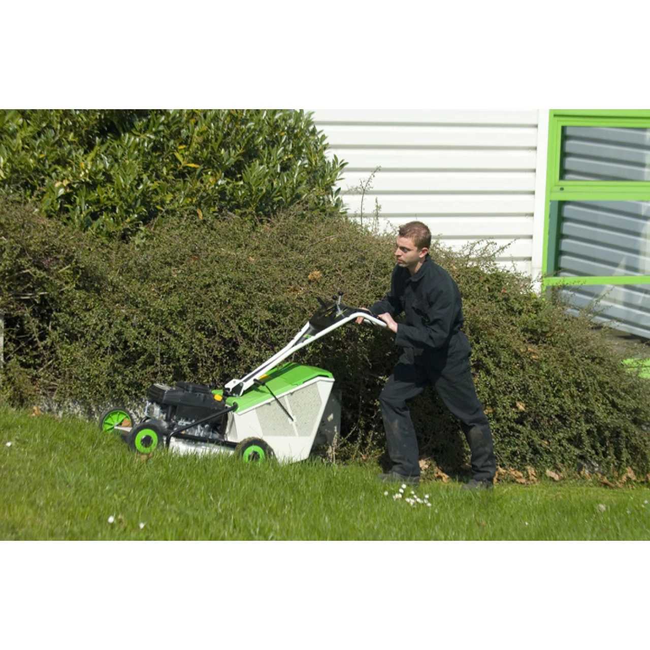 Mähen – Theoretische Mähflächenleistung: bis zu 2 090 m²/ Stunde. Einsatzbereit auf Gelände mit einem Gefälle bis zu 20°. Die Aerodynamik des Gehäuses und der breite Auswurfkanal vermeiden jede Verstopfungsgefahr.