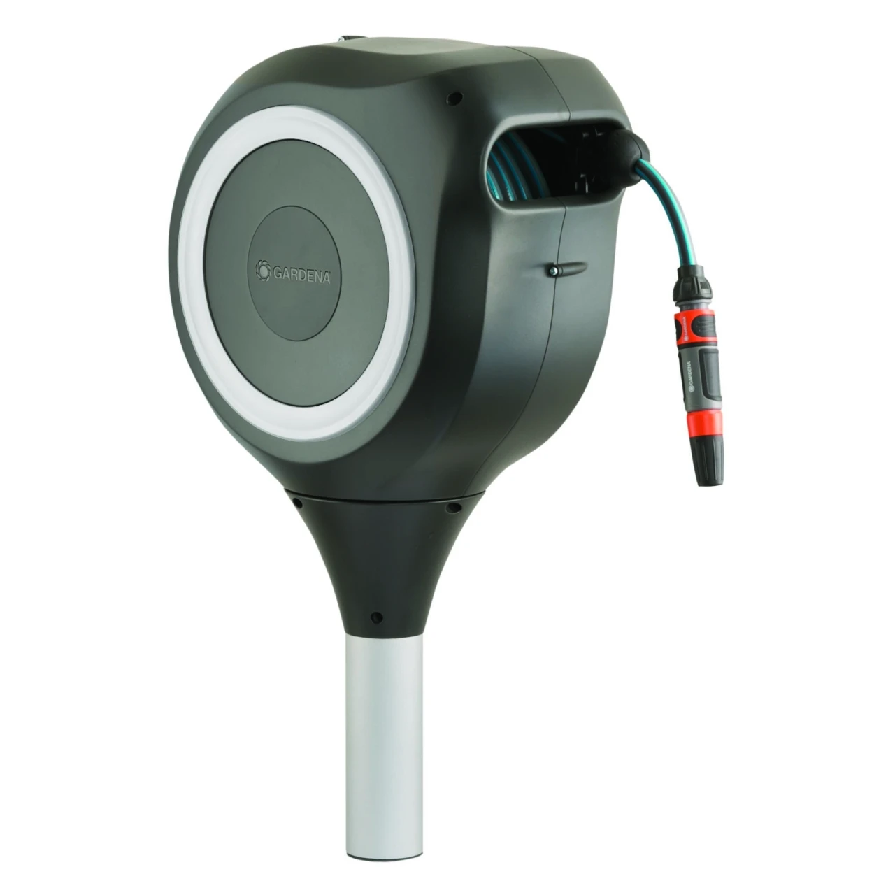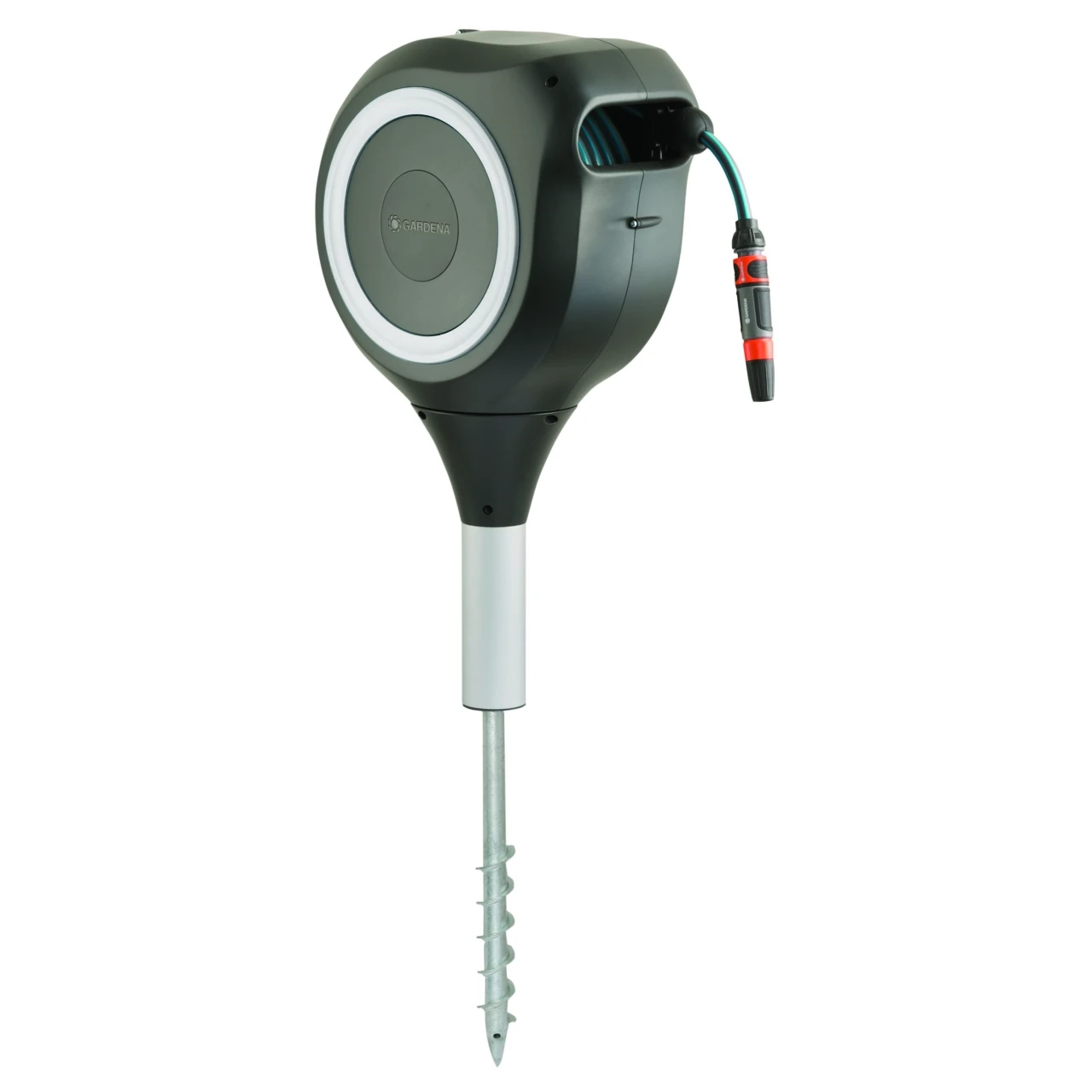 Die RollControl-Technologie sorgt für den sicheren und kontrollierten Rückzug. Das hochwertige Material wird sowohl mit einen UV- als auch mit einem Frostschutz vor Beschädigungen durch Witterungseinflüsse geschützt. Die Box lässt sich dank des kompakten und stilvollen Designs problemlos in jeden Garten integrieren. Zudem ist sie auf die Höhe der GARDENA Mähroboter abgestimmt, damit auch der Rasen um die Schlauchbox immer gepflegt und gemäht wird. Der Lieferumfang enthält neben der Garten-Schlauchbox mit dem 20 Meter langen Bewässerungsschlauch alle notwendigen Anschluss- und Montageteile: Einen flexiblen Verbindungsschlauch, alle benötigten Original GARDENA Systemteile, Montagezubehör sowie eine Spritze mit zwei verschiedenen Sprühbildern.