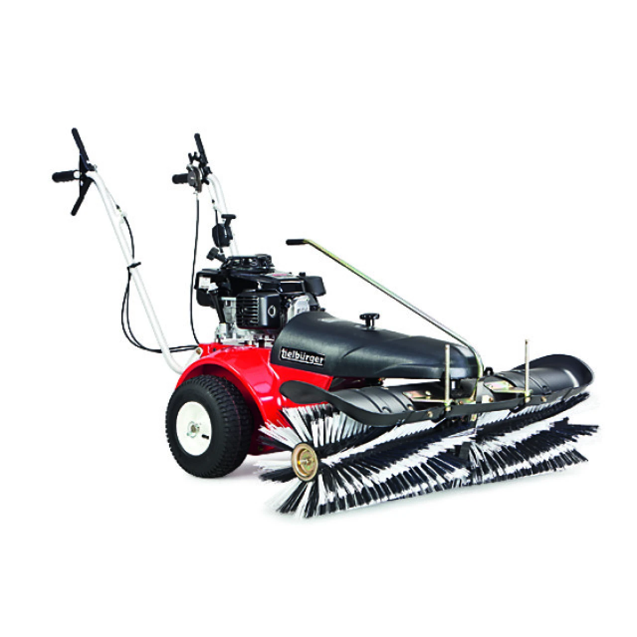 Professional Class Kehrmaschine tk58professional inkl. Universal-Doppelbesatzbürste Arbeitsbreite: 1,20 m Bürstendurchmesser: 0,40 m Arbeitsgeschwindigkeit: ca. 2,6 – 4,2 km/h 3-Gang Ölbadgetriebe mit Rückwärtsgang 15.00×6-6 luftbereift Allwetter-Breitreifen Variable Kehrbürstengeschwindigkeit Stufenlose Bürstenhöhenverstellung Gewicht: 111 kg Motor: Honda GXV160