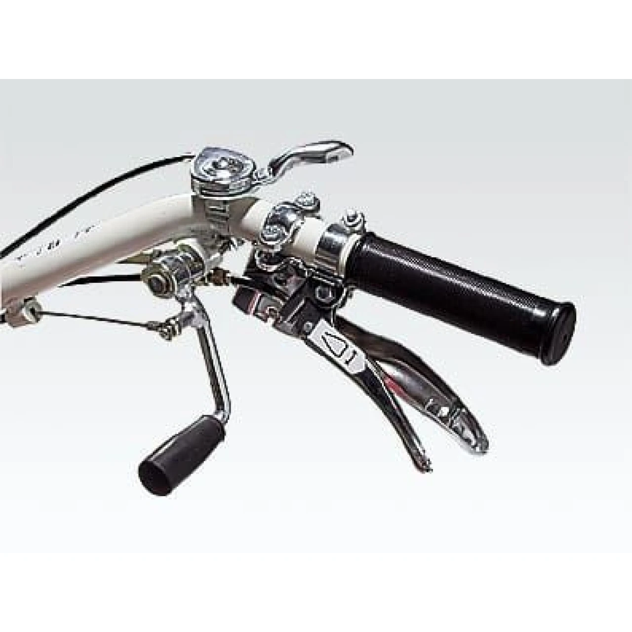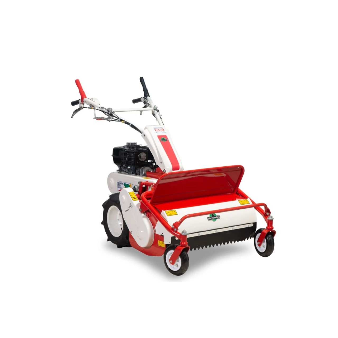 auf den breiten Antriebsrädern. Der Führungsholm des Mähers ist dank Quick-Schnellverstellung auch während der Arbeit unkompliziert in Höhe und Seite zu verstellen. Der getrennte Mäh- und Fahrantrieb und das schaltbare Getriebe ermöglichen eine Anpassung der Geschwindigkeit an die gegebenen Verhältnisse, ohne dabei die Mähleistung zu reduzieren. Die Klappe am Mähdeck öffnet sich automatisch bei höherem Strauchwerk. Die Einzelradkupplung für komfortable Lenkmanöver und der niedrige Schwerpunkt der Maschine sorgen für hohe Wendigkeit.