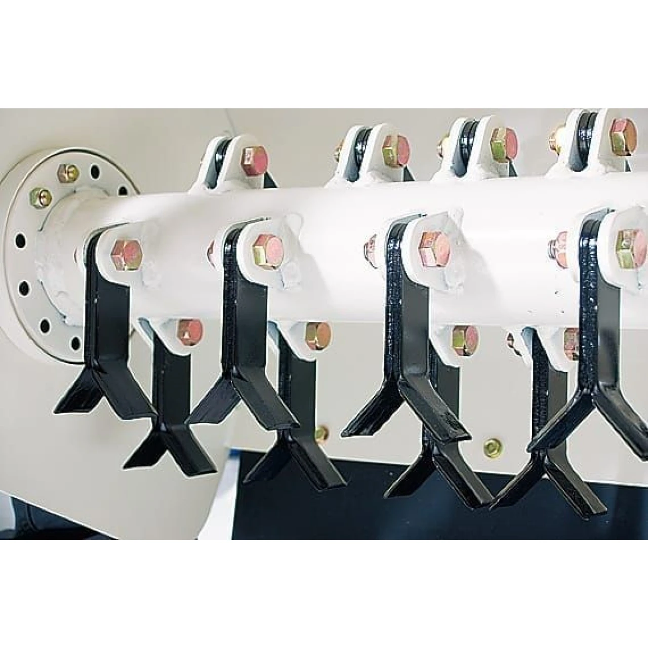 Die Herkules Schlegelmäher meistern problemlos dichtes Gestrüpp und hohes Gras. Das Schnittgut wird durch die Y-Messer besonders fein zerkleinert und gleichmäßig über die gesamte Schnittbreite abgelegt. Für perfekte Traktion auch auf weichem Boden sorgt ein speziell angeordnetes, auseinandergezogenes Ackerstollenprofil