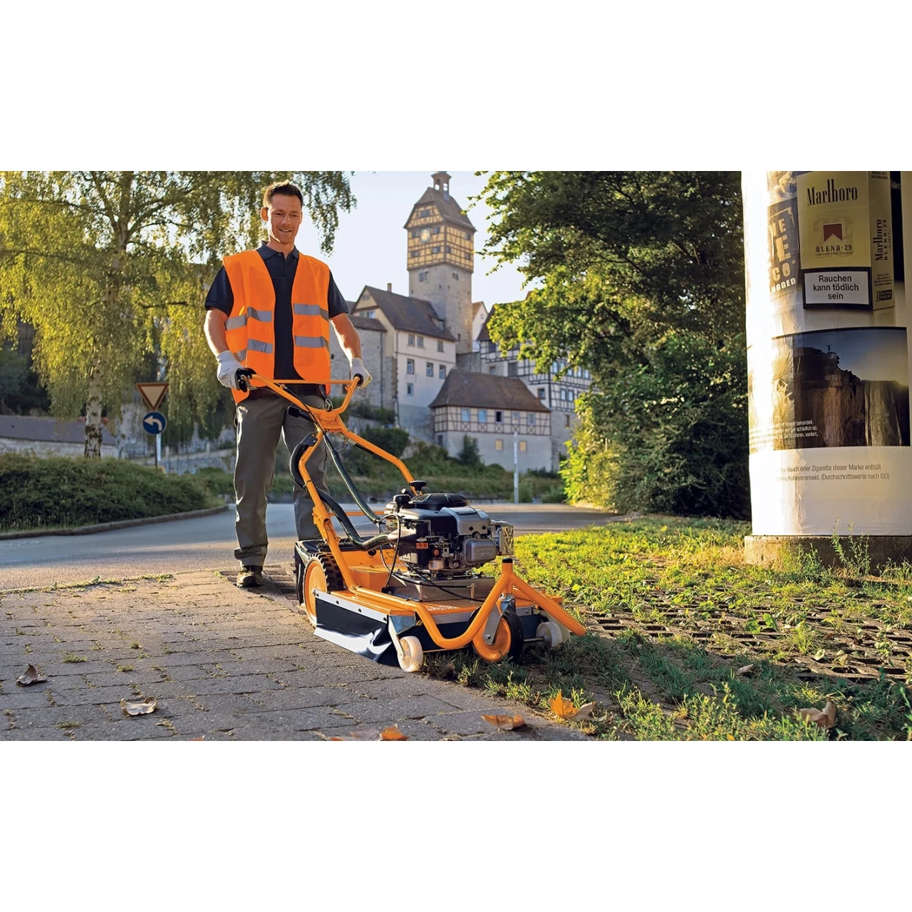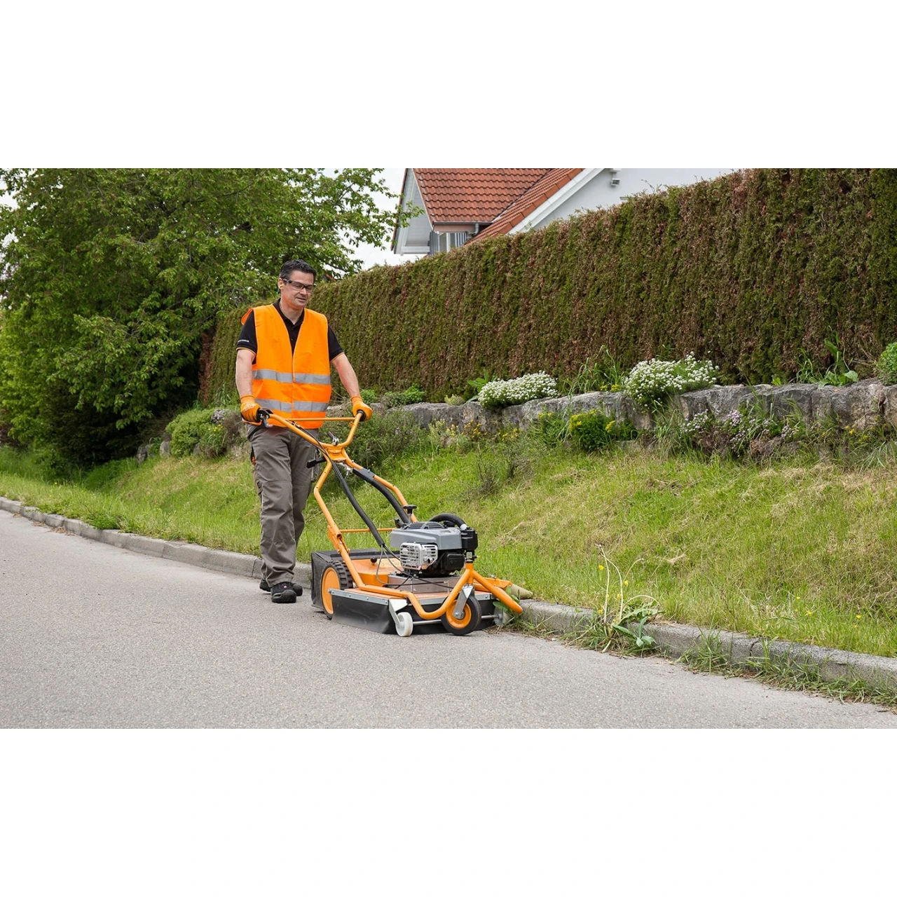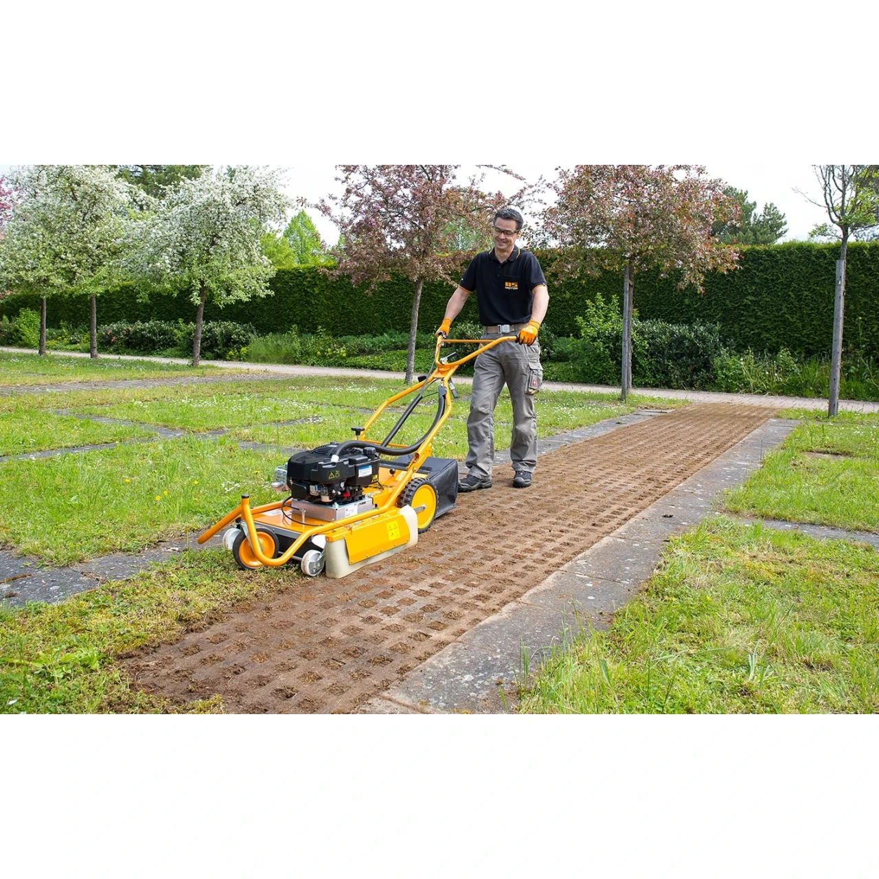 Oberflächen schonen und wenig Personal einsetzen – so effizient funktioniert die Unkrautentfernung aus Fugen und zwischen Steinen mit dem AS 50. Wo immer Sie arbeiten sorgt der doppelte Steinschlagschutz für maximierte Sicherheit. bei minimierter Geräuschentwicklung. Durch die rein mechanische Arbeitsweise ist der AS 50 auch in umweltsensiblen Bereichen einsetzbar. Das anpassen der Arbeitsgeschwindigkeit. das Reinigen von Bordsteinkanten oder das Entlangfahren an Hauswänden ist genauso unproblematisch. wie der Transport dieses kompakten mechanischen Unkraut-Entferners im Pkw-Kombi oder per Anhänger.